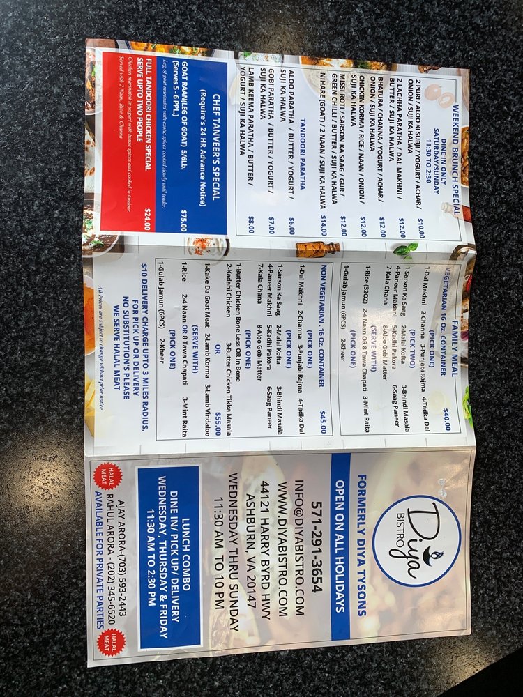 Welcome to Diya Bistro, where culinary creativity meets authentic flavors. Located at 44121 Leesburg Pike, Ashburn, VA, this charming venue offers an inviting atmosphere perfect for any event or casual lunch. The menu boasts a delightful array of Indian classics, all available all day long. must-try dishes include the rich Dadi Ka Sarson Ka Saag With Paneer and the mouthwatering Malai Kofta, each reflecting thoughtful preparation and vibrant tastes.